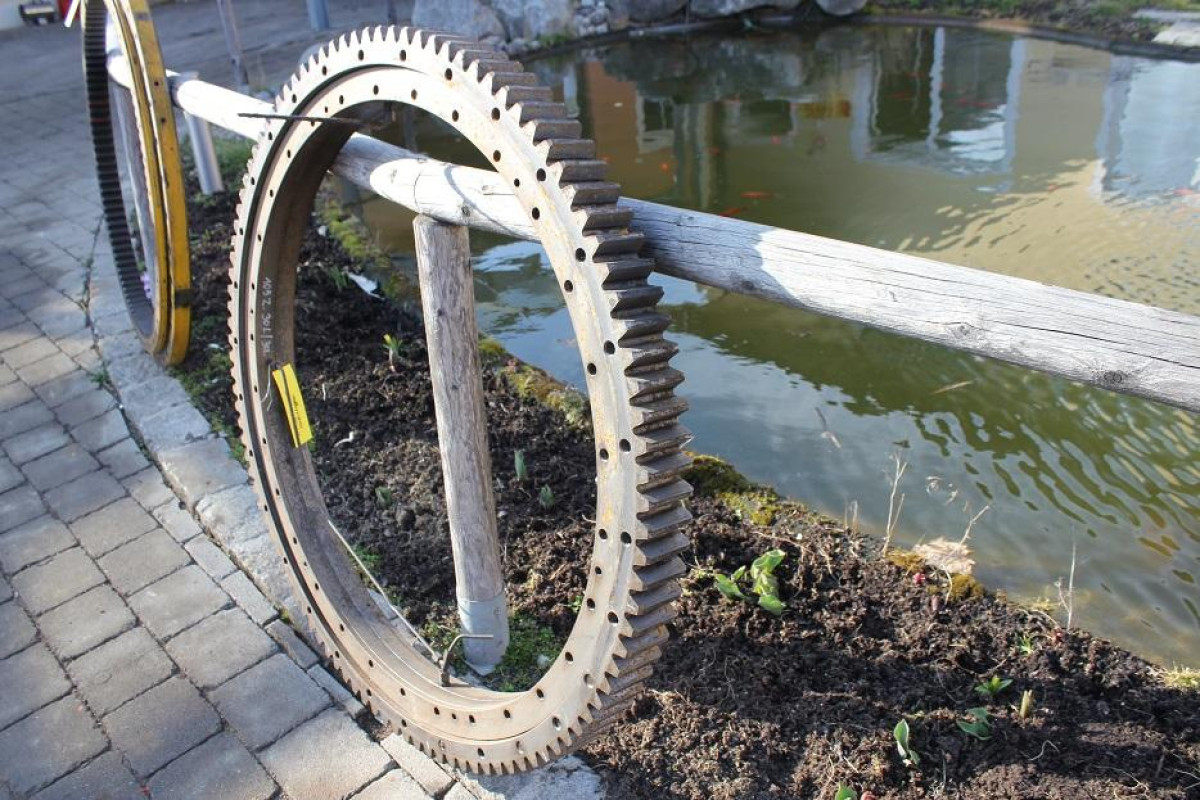Der Drehkranz ist außen verzahnt, hat 105 Zähne , 30/30 Löcher