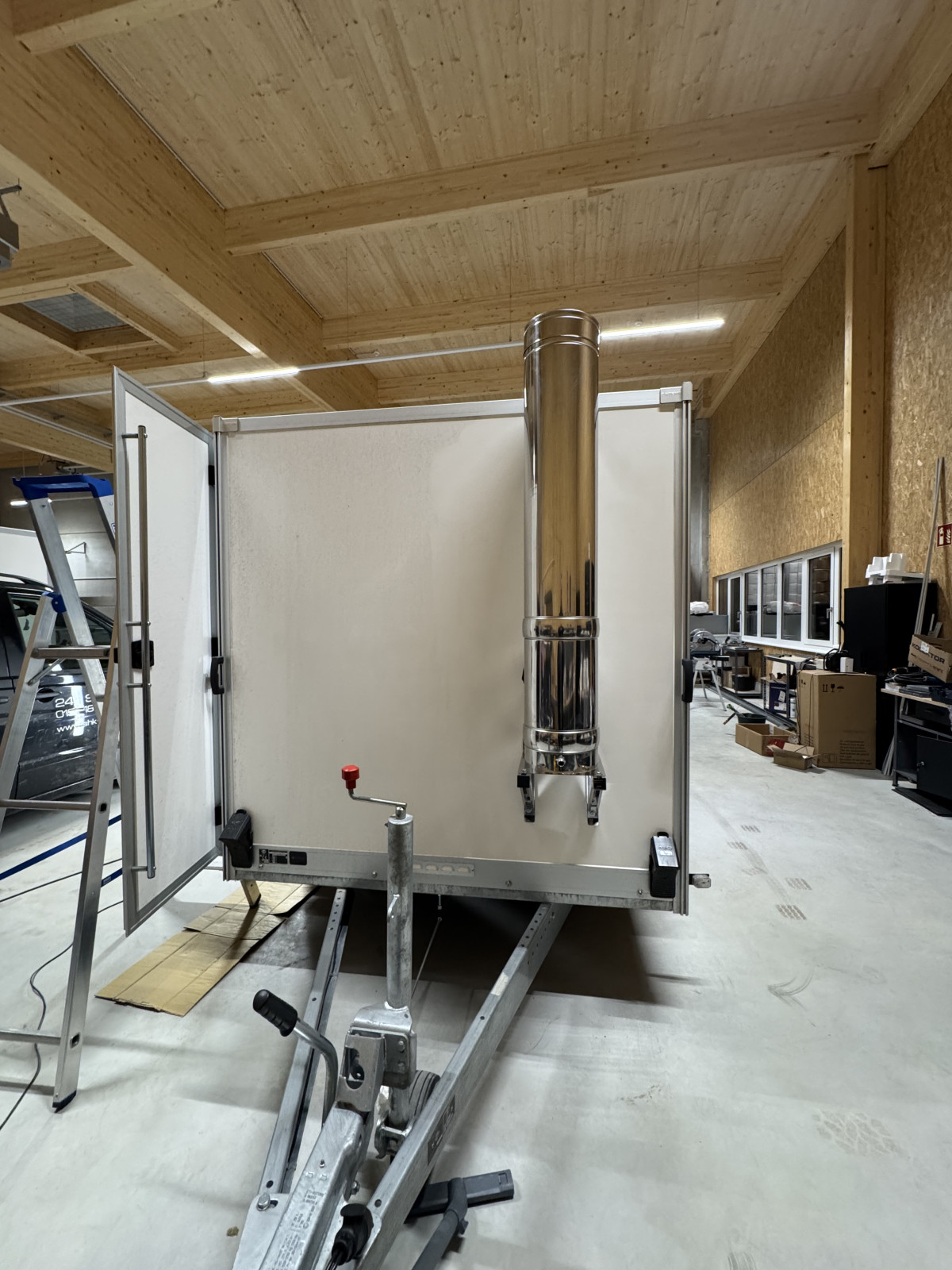 Edelstahlabgasrohr mit Dämmung DN250 nach Aussen über die Deichsel zum Dach